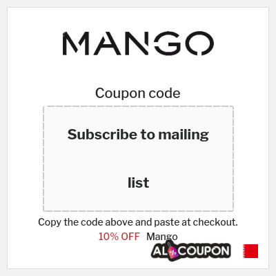 | 10% OFF | Subscribe to mailing list | Mango promo code | 10% off latest collections |